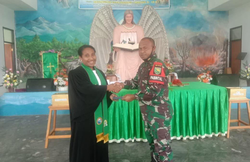 “Saya mewakili seluruh para jemaat gereja mengucapkan terima kasih atas bantuan saudara-saudara tentara dari Pos Walesi yang saat ini bertugas, semoga Tuhan memberikan balasan yang baik kepada