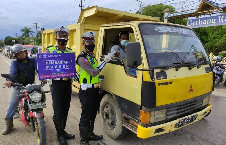 Selasa, (16/11/2021) Personil unit Turjawali Sat Lantas Polres Kutai Kartanegara, melaksanakan sosialisasi dan edukasi tertib berlalu lintas dan tertib protokol kesehatan.