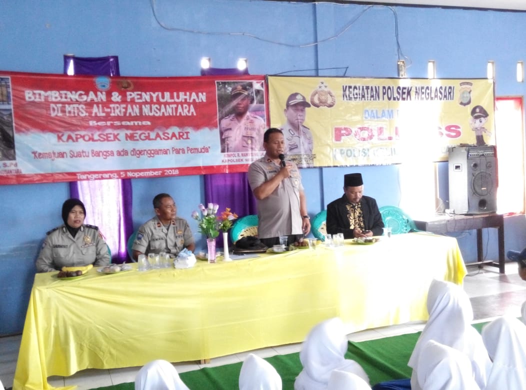 Kapolsek Neglasari Kompol R. Manurung, SH mendukung salah satu Program Kapolres tersebut dengan mengunjungi MTS Al Irfan Nusantara, RT. 02/04, Selapajang Jaya, Neglasari, Kota Tangerang. Senin (05/11/2018) sekitar pukul 10.30 WIB.