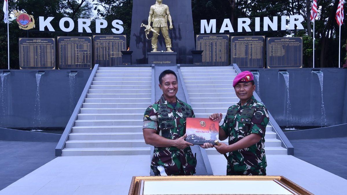 Jenderal TNI Andika Perkasa juga menyapa para prajurit Korps Marinir yang bertugas di dalam negeri maupun di luar negeri melalui video conference.
