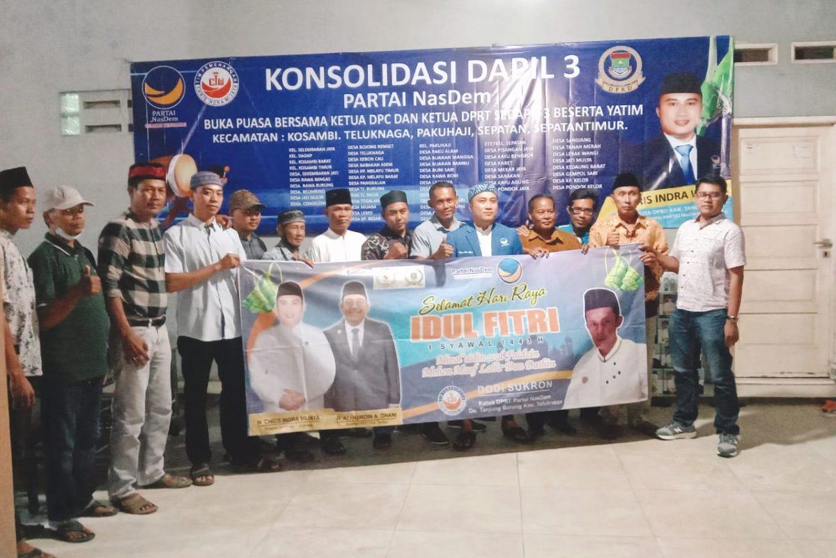 Chris Indra Wijaya.,Anggota DPRD Kabupaten Tangerang Fraksi Partai Nasdem Dapil III (Pakuhaji, Sepatan, Sepatan Timur, Teluknaga, Kosambi) Menyampaikan ,”Assalamualaikum Warahmatullahi Wabatokatuh “, Alhamdulillah Puji Syukur Kepada Allah SWT. Pelaksanaan Kegiatan Acara Konsolidasi Dapil 3 Partai Nasdem (Buka Puasa Bersama Dan Santunan Anak Yatim). Alhamdulillah Diakhir Ramadhan Ini Kita Berkumpul Bersama Para DPC Dan DPRt Partai Nasdem “.