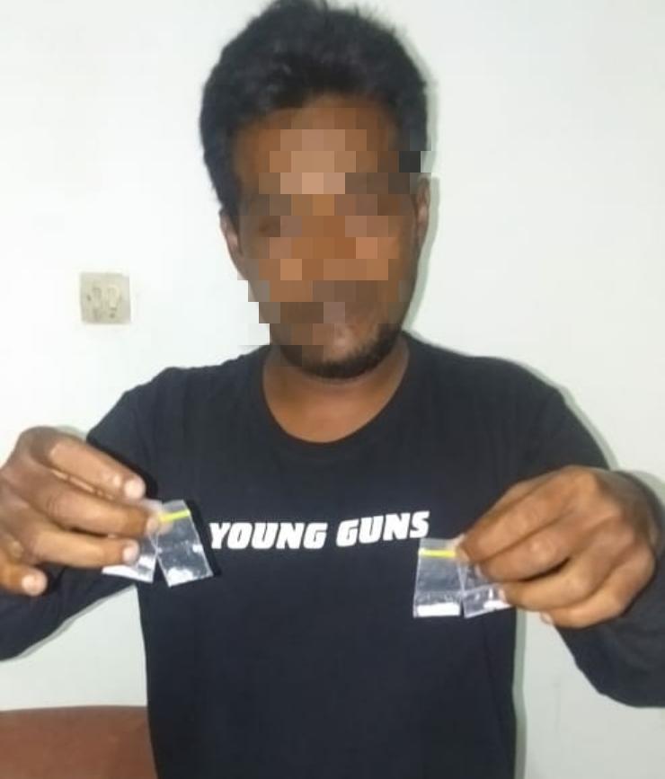 Kemudian Personil anggota Opsnal Polsek Loa Janan mendatangi Orang tersebut dan melakukan pengeledahan di sekitar badan dan Tas Warna Hitam Merk Volkom dan dalam tas tersebut ditemukan 4 ( Empat ) Poket yang di duga Sabu – Sabu.