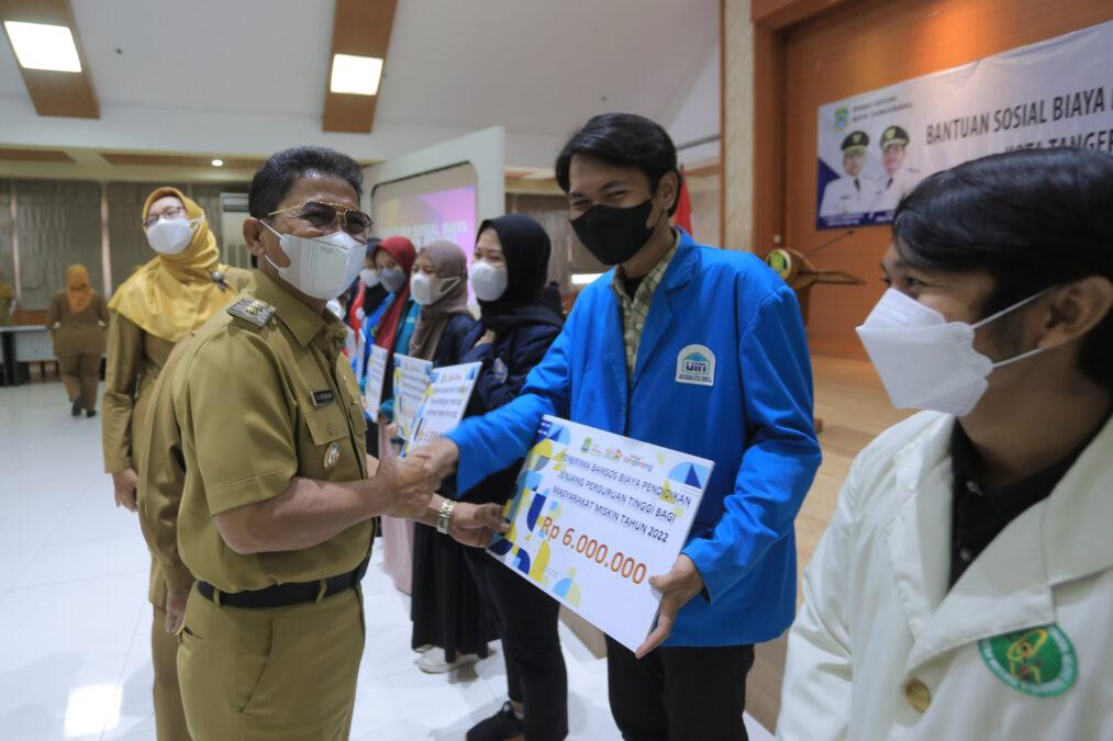 Bantuan Biaya Pendidikan Jenjang Perguruan tinggi tersebut diserahkan secara simbolis oleh Wakil Wali Kota Tangerang, H. Sachrudin, kepada 13 mahasiswa perwakilan dari tiap Kecamatan di Kota Tangerang.