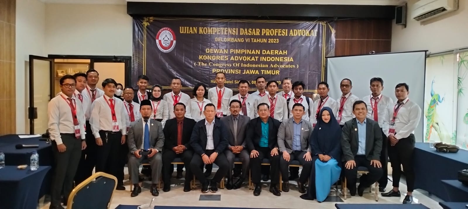 SIDIKPOST | Jawa Timur , Dewan Pimpinan Daerah Kongres Advokat Indonesia Propinsi Jawa Timur kembali menunjukkan eksistensinya sebagai organisasi Advokat yang dinamis dengan melaksanakan Ujian Kompetensi Dasar Profesi Advokat (UKDPA) Gelombang VI/2023, bertempat di Edotel Sidoarjo Jalan Jenggolo Nomor 1B Sidoarjo, pada hari Minggu kemarin. ( 08/1/2023)