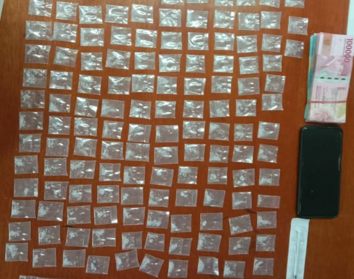 “Saat dilakukan penggeledahan badan ditemukan sebuah tas hitam di dalam kamarnya yang berisikan 155 (seratus lima puluh lima) pocket sabu, setelah di introgasi bahwa benar sabu-sabu yang ada didalam tas tersebut ialah miliknya,”jelas Kasat Resnarkoba.
