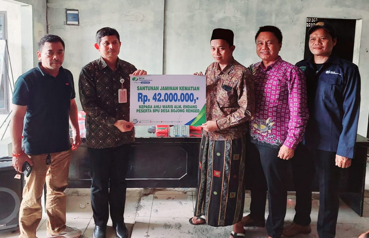 Suhendra HMS Kepala Desa Bojong Renged ,” Mengucapkan Terima kasih dan sangat mengapresiasi BPJS Ketenagakerjaan Cabang Pasar Kemis tangerang yang telah membantu warga desa Bojong Renged berupa “penyerahan simbolis Klaim Jaminan Kematian (JKM) kepada ahli waris penerima manfaat. kepada almarhum Endang Bin Bakri Peserta BPU Desa Bojong Renged sebesar Rp 42.000.000 Bertempat Di Aula Kantor Desa Bojong Renged.