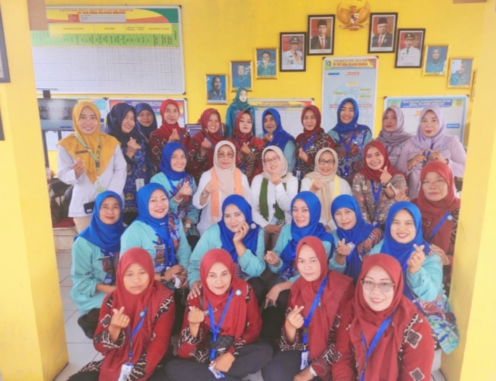 Ny. Yanni Zamzam Manohara Ketua TP-PKK Kecamatan Teluknaga Beserta Ny. Rizki Fachzi Wakil Ketua TP-PKK Kecamatan Teluknaga Bersama Ny. Siti Suryani Suhendra Ketua TP-PKK Desa Bojong Renged Bersama Ketua Kader PKK Dan Anggota PKK Desa Bojong Renged.