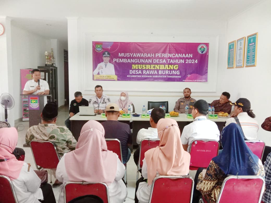 SIDIKPOST | Kabupaten Tangerang – Pemerintah Desa Rawa Burung Menggelar Acara Musyawarah Rencana Pembangunan Desa (MUSRENBANGDES) RKPDes TA. 2024 Dan Daftar Usulan RKPDes TA. 2025. Pelaksanaan Kegiatan Acara Tersebut Dilaksanakan Di Aula Kantor Desa Rawa Burung Kecamatan Kosambi Kabupaten Tangerang.(27/09/23)