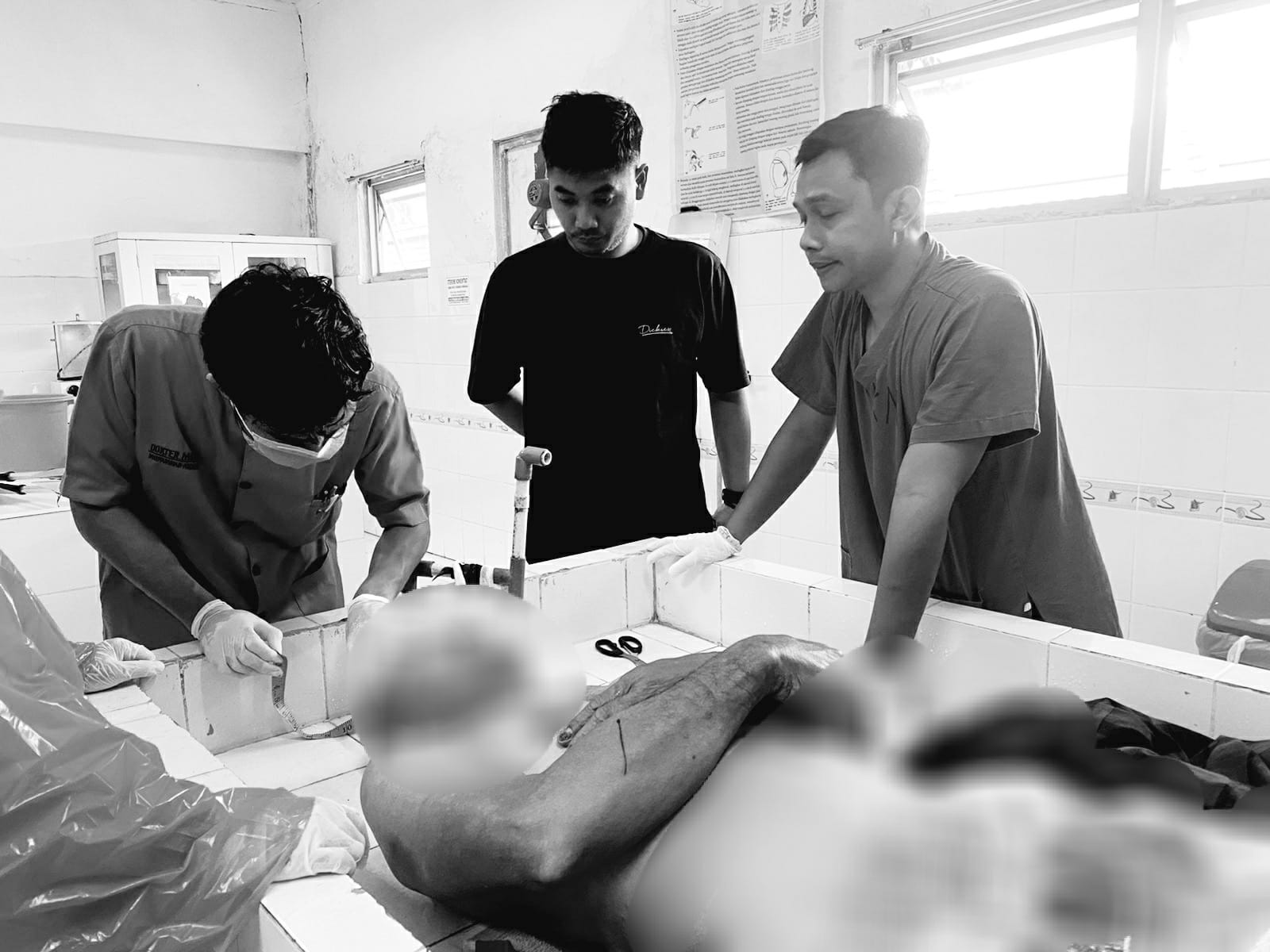 Melihat hal itu, syamsudin mendatangi korban dan mengecek korban sudah tidak bernafas. Ia pun meminta bantuan saksi 2 Ahmad Zam Zami dengan Mengedor Mess.