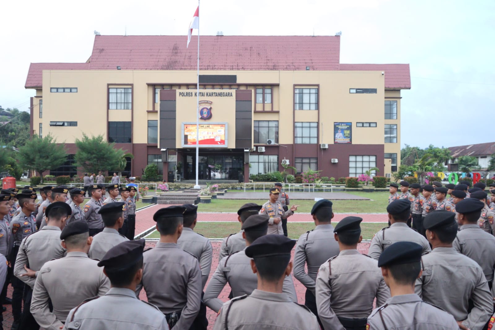 SIDIKPOST | Kukar – Kabag Ops Polres Kutai Kartanegara Kompol Subari berikan arahan kepada Anggota Samapta usai pelaksanaan apel pagi, Pada Senin (16/10).