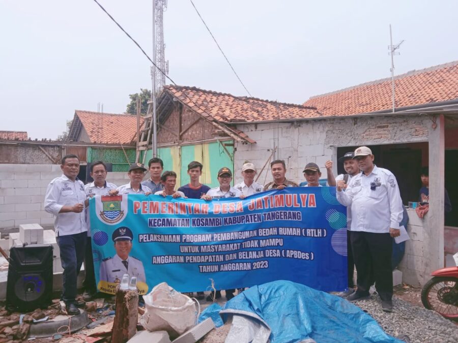 SIDIKPOST | Kabupaten Tangerang – Pemerintah Desa Jatimulya Melaksanakan Peletakan Batu Pertama Program Pembangunan Bedah Rumah Tidak Layak Huni (RTLH) untuk masyarakat tidak mampu. Anggaran pendapatan dan belanja Desa (APBDes) Perubahan Tahun Anggaran 2023. Pelaksanaan Kegiatan Acara Peletakan Batu Pertama Dihadiri langsung Oleh H. Rama Winata S. Sos. S. IP. M. Si Sekcam Kosambi.