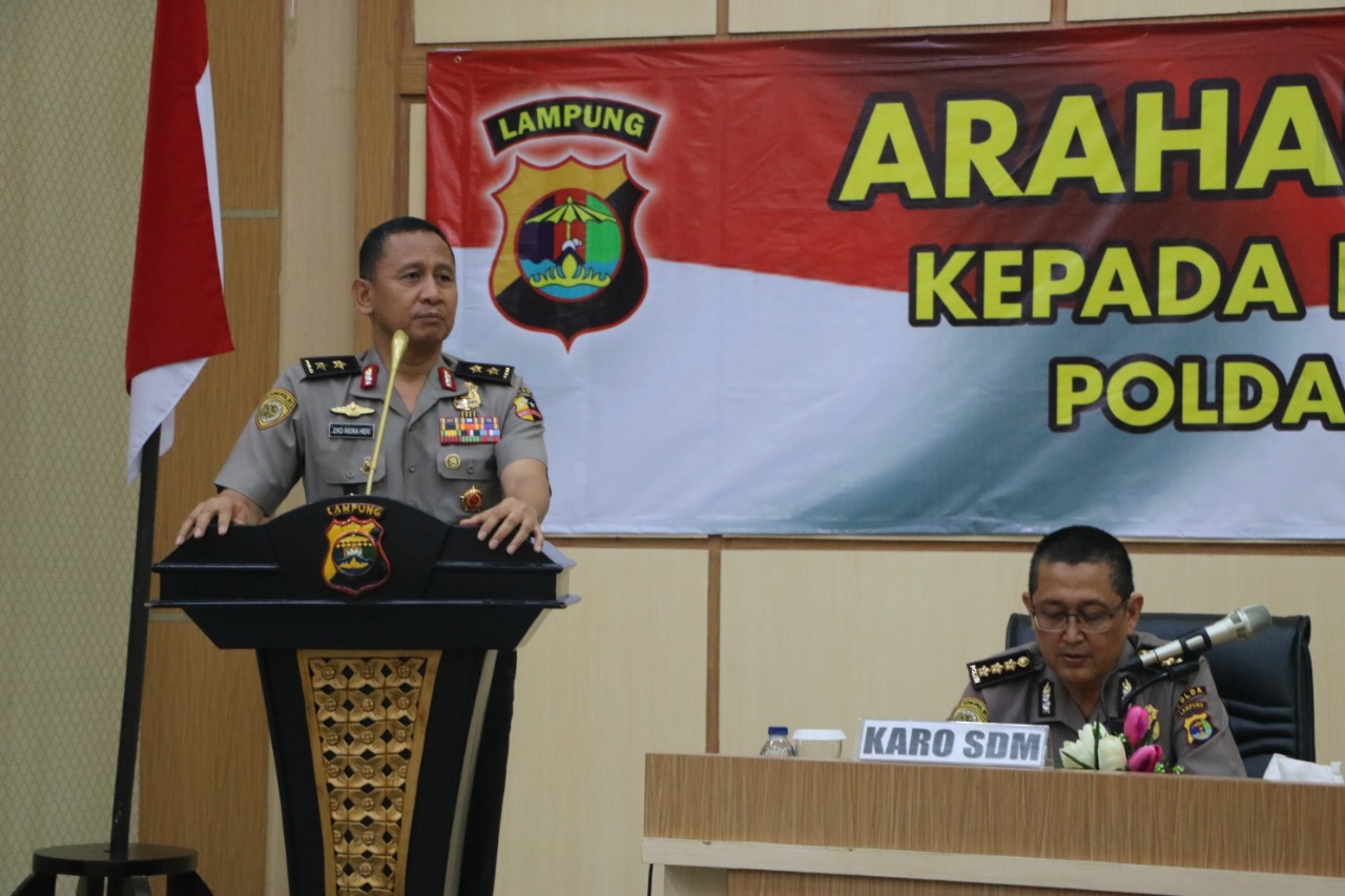 Sidikpost.com-Bandar Lampung Rabu 28 November 2018.——– Kabagwatpers Biro SDM Polda Lampung Akbp Tri Suhartanto Sik mendampingi Karo SDM Polda Lampung Kombes Pol Novian Pranata mengutip arahan AS SDM Kapolri Irjen Pol. DR. Eko Indra Heri S.M.M.