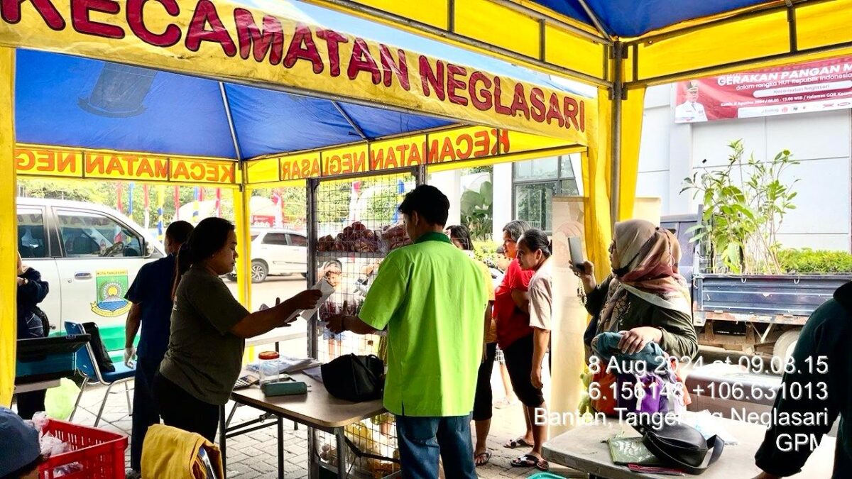 SIDIKPOST | KOTA TANGERANG – Dinas Ketahanan Pangan (DKP) Kota Tangerang mengadakan bazar sembako murah di beberapa titik di Kota Tangerang, salah satunya di GOR Kecamatan Neglasari pada Kamis (08/08/2024). Kegiatan ini bertujuan untuk membantu masyarakat mendapatkan bahan pokok dengan harga terjangkau.