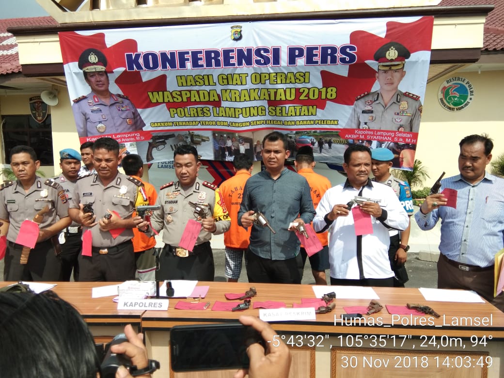 Kegiatan yang digelar di halaman depan polres Lampung selatan adalah hasil operasi  waspada krakatau 2018,Polres lampung selatan berhasil mengamankan 9 pucuk senjata api rakitan, 3 air softgun dan 5 sajam berbagai jenis  dan  i polres lampung selatan juga  menangkap  4 tersangka.