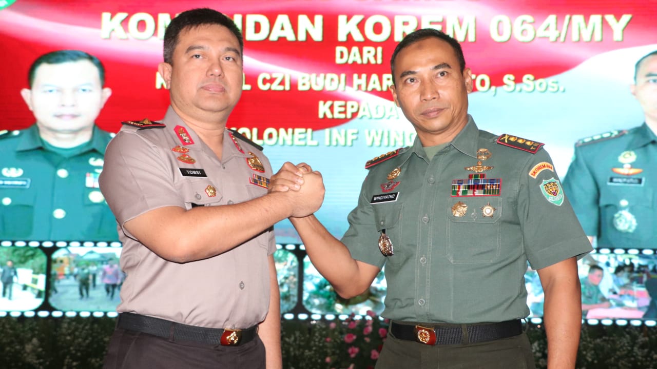 Kapolda Banten Brigjen Pol Drs. Tomsi Tohir, M.Si didampingi Kasat Brimob Polda Banten Kombes Pol Reeza Herasbudi S.I.K.,M.M, Kabidhumas Polda Banten AKBP Edi Sumardi Priadinata, dan Kapolres Jajaran hadir dalam kegiatan lepas sambut komandan korem 064 maulana yusuf.