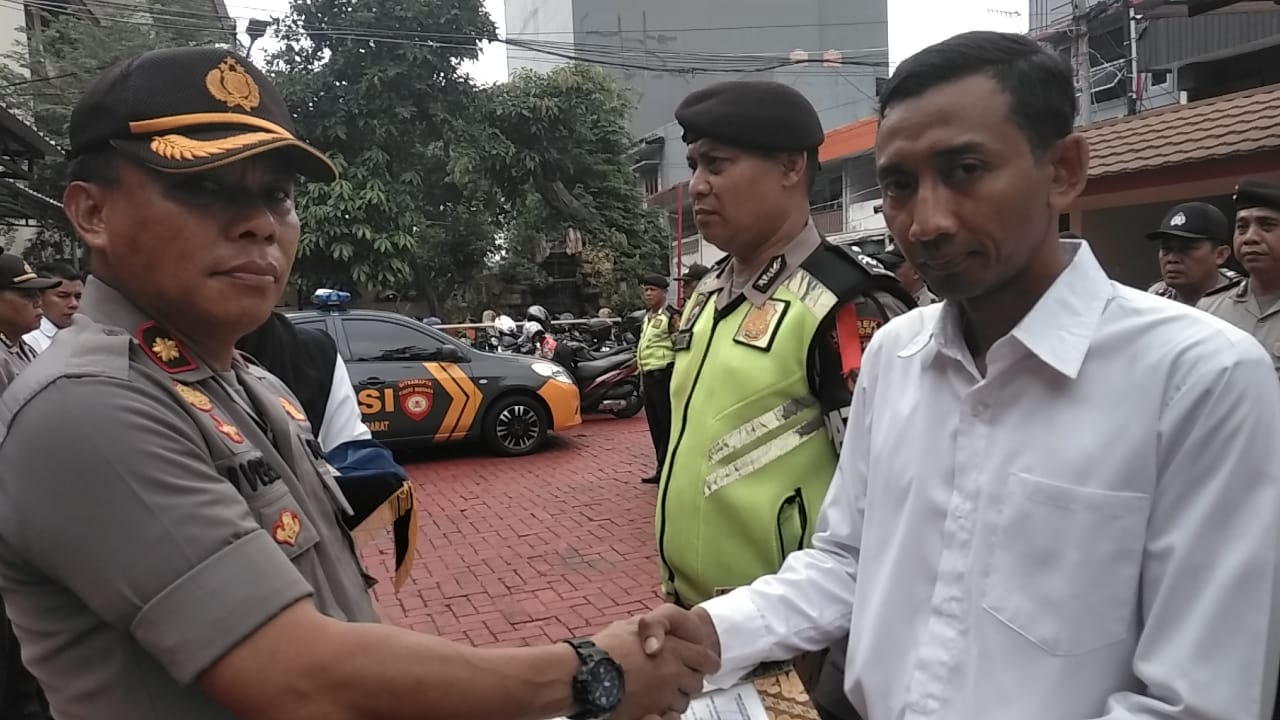 Kapolsek Tambora selaku Inspektur Apel memberikan penghargaan tersebut kepada, Aiptu Jujianto Ginaryo Anggota Unit Sabhara, Bripka Sugiyatno Anggota Unit Reskrim Polsek Tambora dan Pegi Parlindungan Anggota Banpol Pada Polsubsektor Jembatan Besi.
