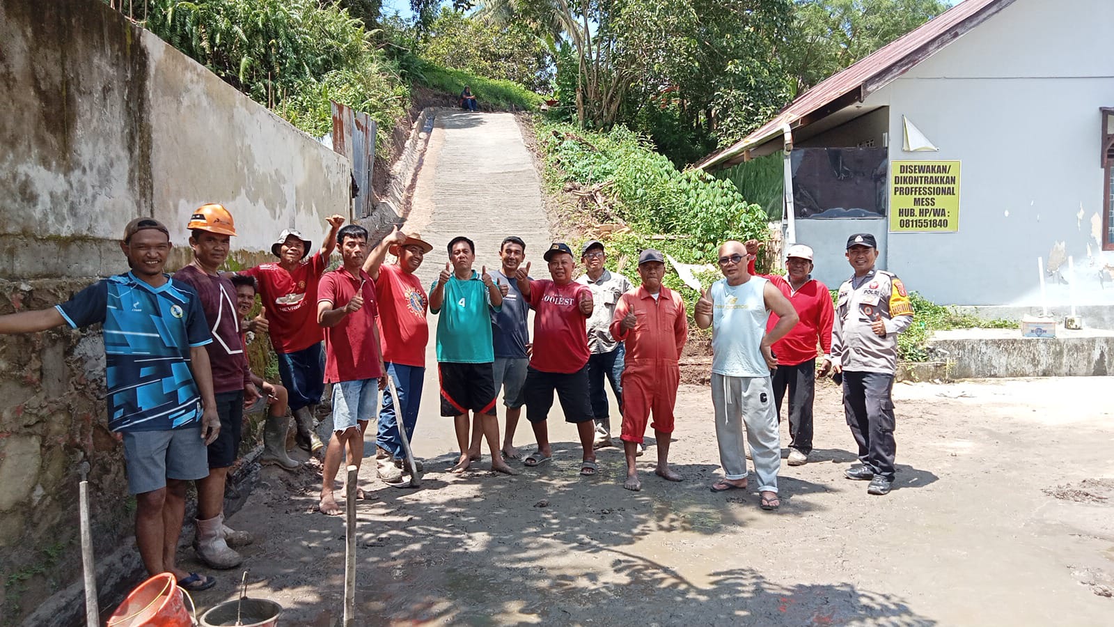 SIDIKPOST | Kukar – Bhabinkamtibmas Kelurahan Muara Jawa Ulu, Aiptu Immanuel M, turut serta dalam kegiatan gotong royong bersama warga di wilayah binaannya, Minggu (4/5/2025). Kegiatan ini dilakukan untuk melakukan semenisasi badan jalan yang menghubungkan RT 018 dan RT 033, tepatnya di Jalan Ir. Soekarno, Gang Mangga menuju Gang Durian, Kelurahan Muara Jawa Ulu, Kecamatan Muara Jawa.
