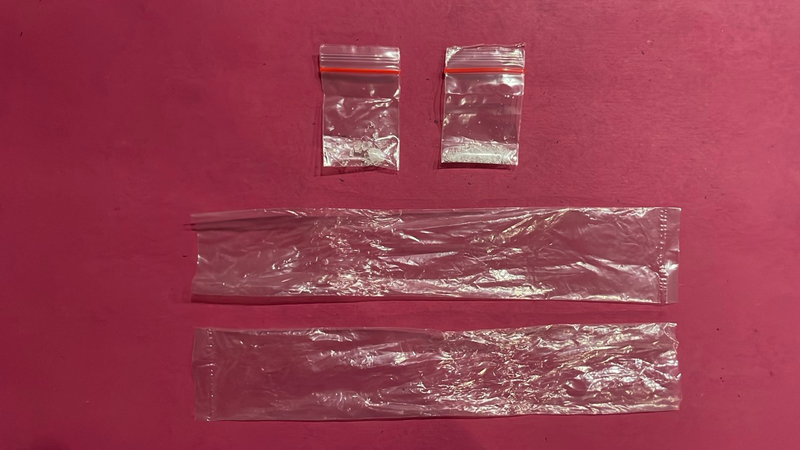 Barang bukti yang turut diamankan antara lain, 2 bungkus plastik bening berisi kristal putih (diduga sabu-sabu) masing-masing seberat 0,4 gram dan celana jeans panjang warna hitam.