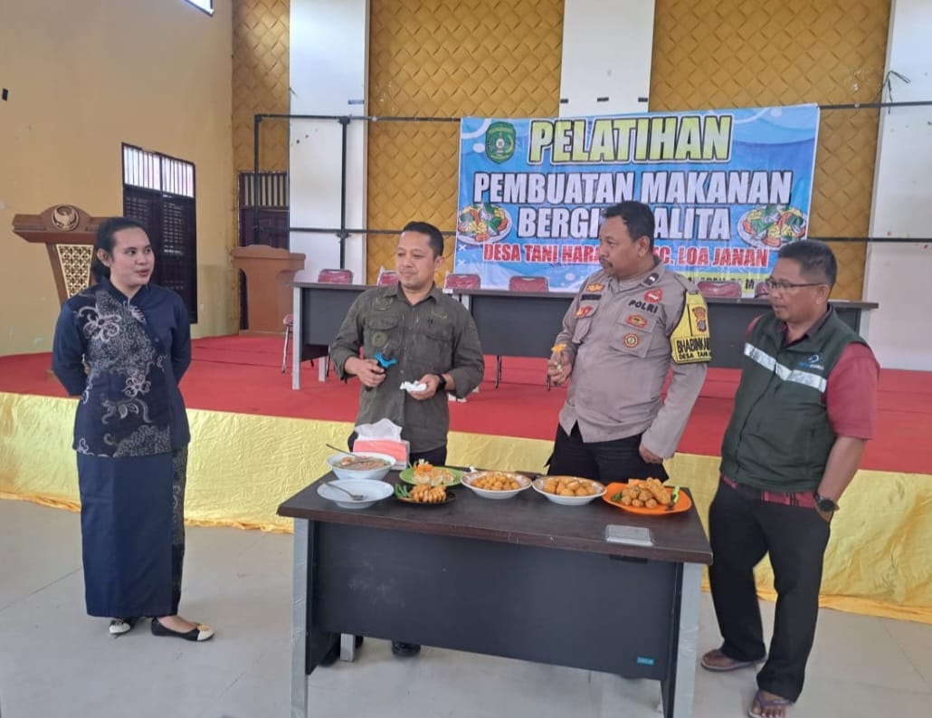 SIDIKPOST| Kukar – Sebagai bentuk kepedulian terhadap kesehatan masyarakat dan upaya penanggulangan stunting, Bhabinkamtibmas Desa Tani Harapan, Aipda Sudarsono, hadir dan memberikan dukungan langsung dalam kegiatan pelatihan pembuatan makanan bergizi yang digelar di Gedung BPU Desa Tani Harapan, Kamis (22/5/2025).