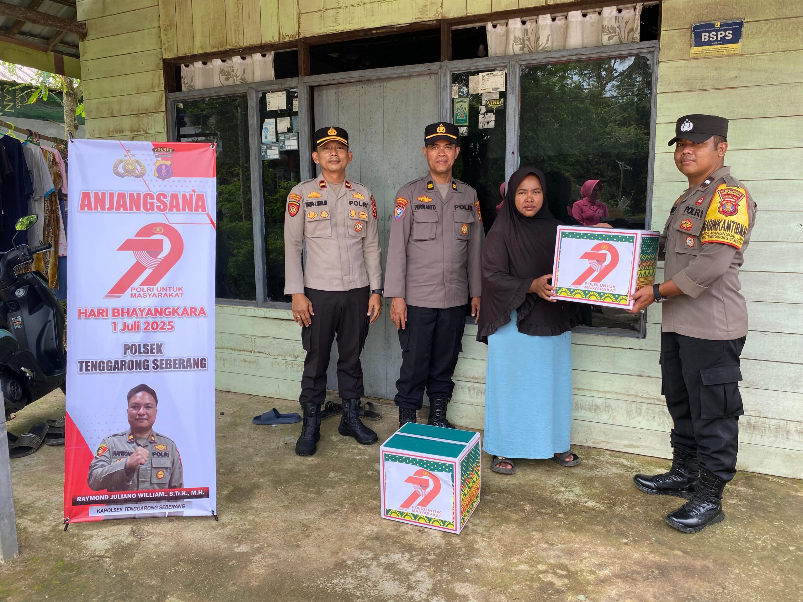 SIDIKPOST| Kukar — Menyambut Hari Bhayangkara ke-79, Polsek Tenggarong Seberang menggelar kegiatan Bakti Sosial dan Anjangsana dengan menyalurkan bantuan sembako kepada warga kurang mampu di Desa Manunggal Jaya, Kecamatan Tenggarong Seberang, pada Rabu pagi (25/6/2025).