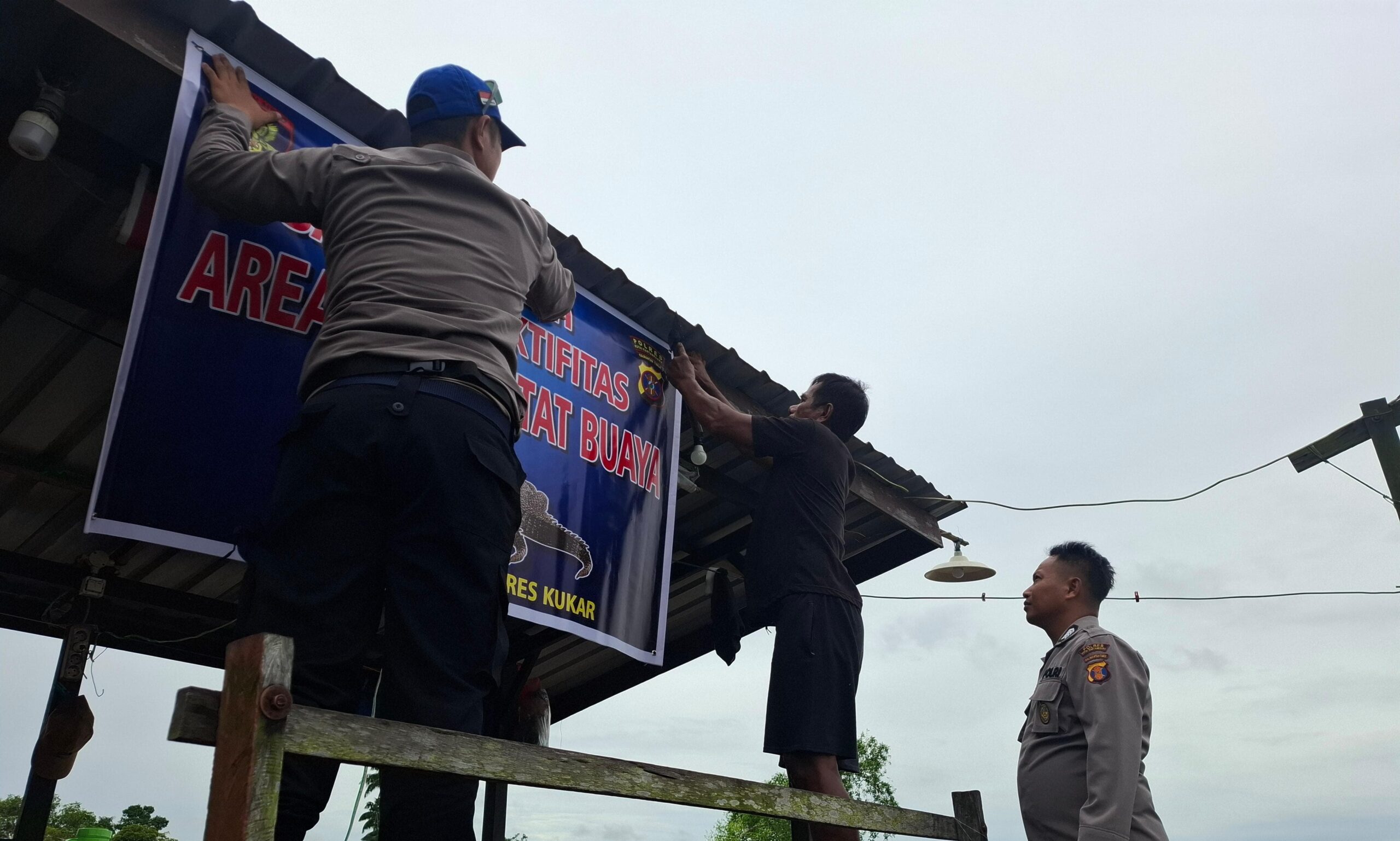 SIDIKPOST| Kukar — Sebagai langkah antisipasi dan upaya meningkatkan kewaspadaan masyarakat terhadap potensi serangan buaya, Satuan Polisi Perairan dan Udara (Satpolairud) Polres Kutai Kartanegara melaksanakan kegiatan pemasangan spanduk peringatan di kawasan rawan buaya, tepatnya di Perairan Sanga-Sanga Muara, Kecamatan Sanga-Sanga, Kabupaten Kutai Kartanegara, pada Selasa (15/7/2025).