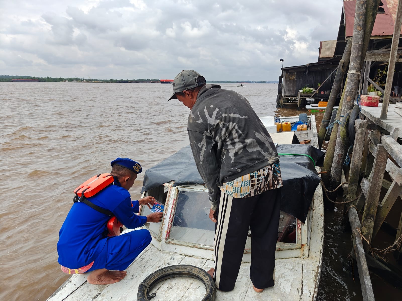 Pada kegiatan pertama, personel menyasar sejumlah kapal tradisional yang tengah bersandar atau beroperasi di Sungai Meriam. Di setiap kapal, petugas menempelkan stiker imbauan keselamatan pelayaran, yang berisi pesan-pesan penting seperti ajakan menggunakan life jacket, tidak melebihi kapasitas angkut, dan saling mengingatkan antarpenumpang mengenai prosedur keselamatan di atas kapal.