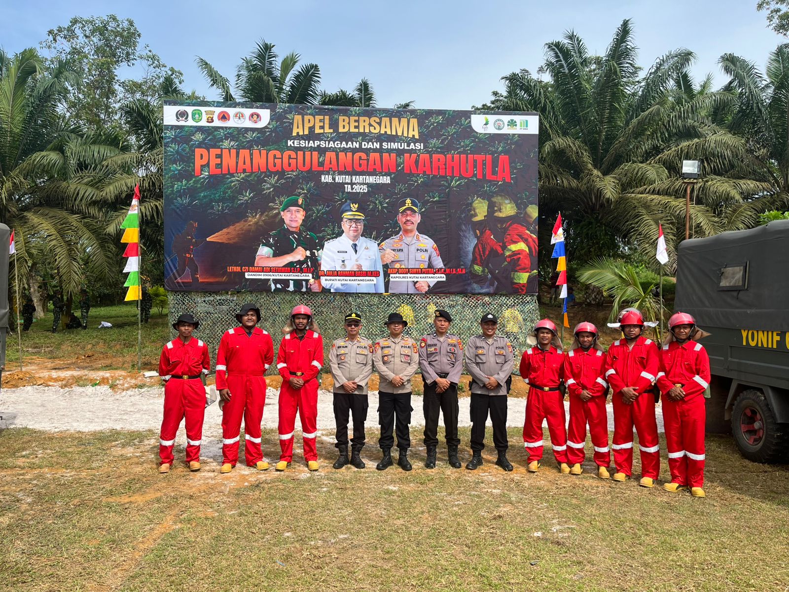 Kabag Ops Polres Kukar Kompol Roganda menegaskan bahwa kesiapsiagaan menghadapi karhutla harus diwujudkan tidak hanya dalam dokumen rencana, tetapi juga melalui latihan nyata.