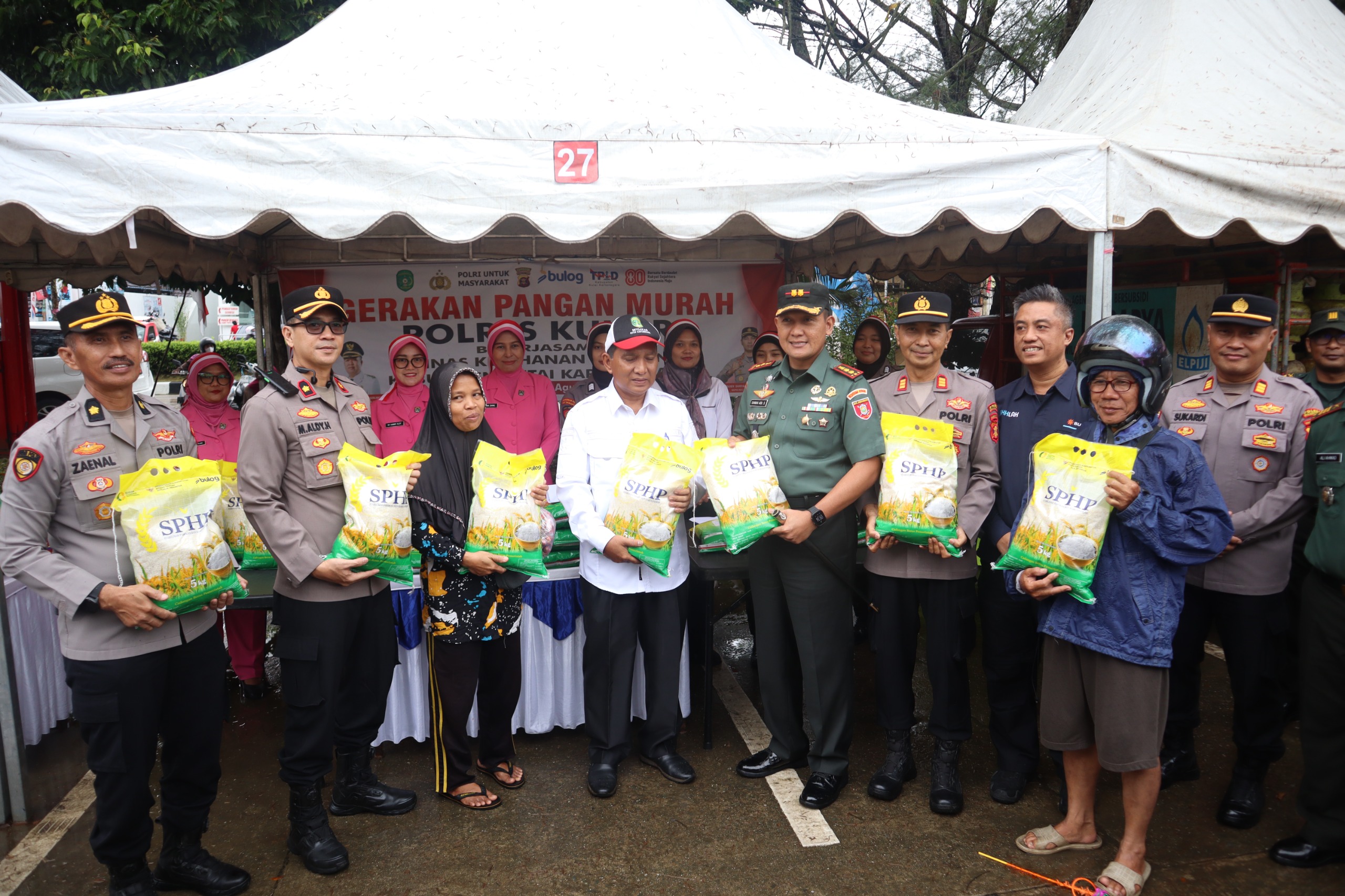 SIDIKPOST|Kukar – Menyambut HUT ke-80 Proklamasi Kemerdekaan Republik Indonesia, Polres Kutai Kartanegara bersama Dinas Perindustrian dan Perdagangan (Disperindag) Kabupaten Kutai Kartanegara menggelar Gerakan Pangan Murah (GPM) di Taman Kreatif Park, Jalan Jenderal Sudirman, Kelurahan Melayu, Rabu (13/8/2025).