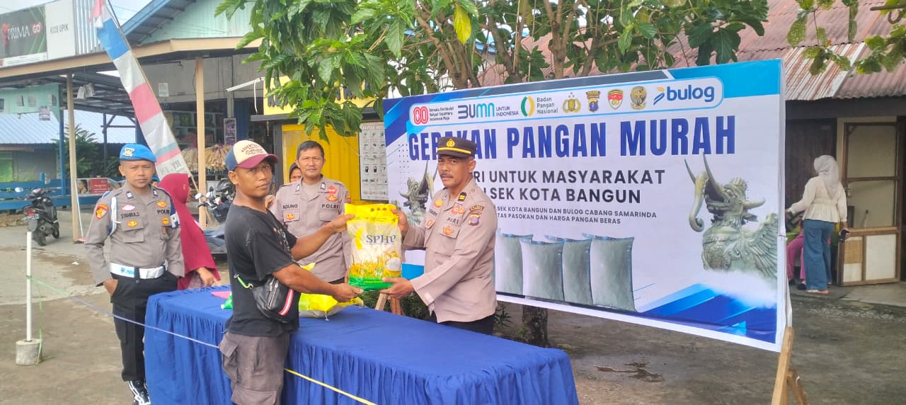 SIDIKPOST| Kukar, – Polsek Kota Bangun melaksanakan Gerakan Pangan Murah (GPM) secara serentak bersama Polres Kutai Kartanegara, Jumat pagi. Kegiatan berlangsung di depan Mako Polsek Kota Bangun mulai pukul 08.30 Wita dan disambut antusias masyarakat yang memadati lokasi sejak pagi.