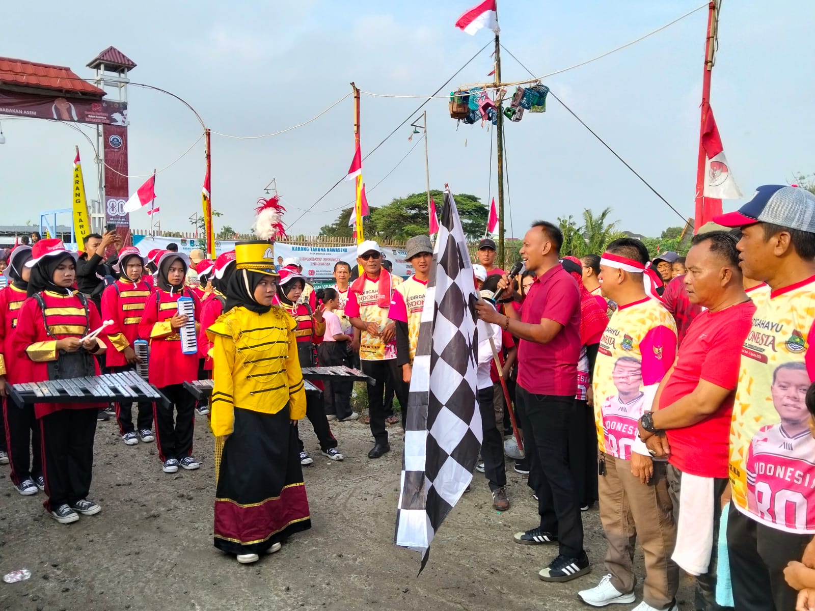 Madjoli Ma’mur SE. M. Ip Kepala Desa Babakan Asem Menyampaikan ,” Puncak HUT Kemerdekaan RI KE-80 Desa Babakan Asem Tahun 2025. Sebagai wujud semangat kemerdekaan yang dipadukan dengan kepedulian terhadap kesehatan masyarakat. Kegiatan ini bertujuan untuk mengajak seluruh elemen masyarakat agar lebih peduli terhadap gaya hidup sehat melalui aktivitas fisik yang menyenangkan dan mudah dilakukan, yaitu Gerak Jalan Santai Dan Senam Tangerang Gemilang “MAJU DESANYA BAHAGIA WARGANYA”.