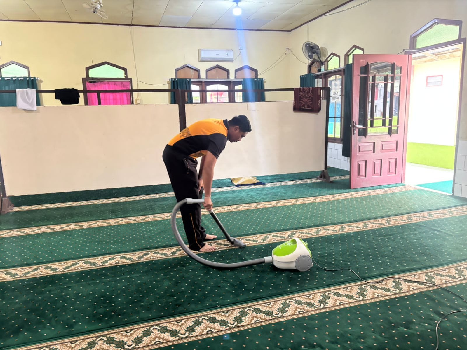 Turut hadir Ketua Langgar Al-Mujahidin, H. Suwandi, yang bersama-sama anggota kepolisian bergotong royong membersihkan area dalam dan luar rumah ibadah. Suasana kebersamaan tampak hangat ketika polisi dan warga saling bahu-membahu menyapu, mengepel, dan merapikan lingkungan sekitar.