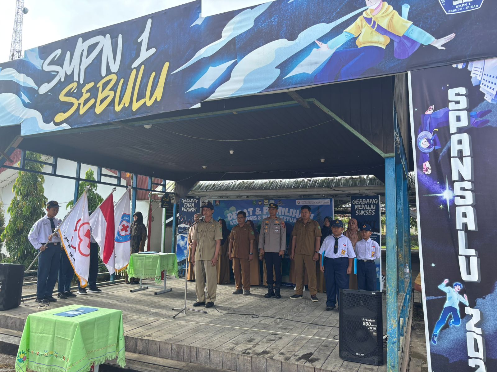 SIDIKPOST| Kukar – Polsek Sebulu turut menghadiri kegiatan upacara pelantikan pengurus Organisasi Siswa Intra Sekolah (OSIS) dan Palang Merah Remaja (PMR) SMP Negeri 01 Sebulu yang digelar di lapangan sekolah setempat, Desa Sebulu Ilir, Kecamatan Sebulu, Kutai Kartanegara, Senin (15/9/2025).