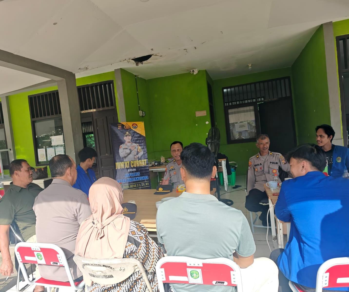 Kegiatan Jum’at Curhat juga dihadiri oleh tokoh masyarakat seperti Ibu Indiyah, Bapak Tukul, dan Bapak Sriyanto, serta mahasiswa PKL. Melalui kesempatan ini, Polres Kukar menyampaikan bahwa program Jum’at Curhat merupakan salah satu program unggulan Kapolri yang bertujuan membuka ruang komunikasi dua arah antara masyarakat dan kepolisian.