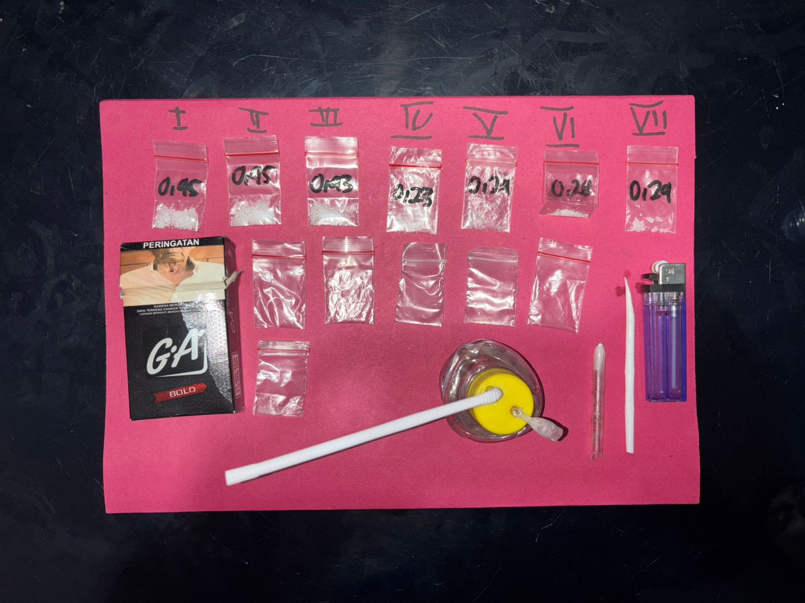 “Dari tangan tersangka, petugas mengamankan barang bukti berupa tujuh paket sabu dengan berat kotor total 2,32 gram, beserta sejumlah perlengkapan seperti alat hisap, plastik klip kosong, korek api, dan pipa kaca,” terang Kapolsek.