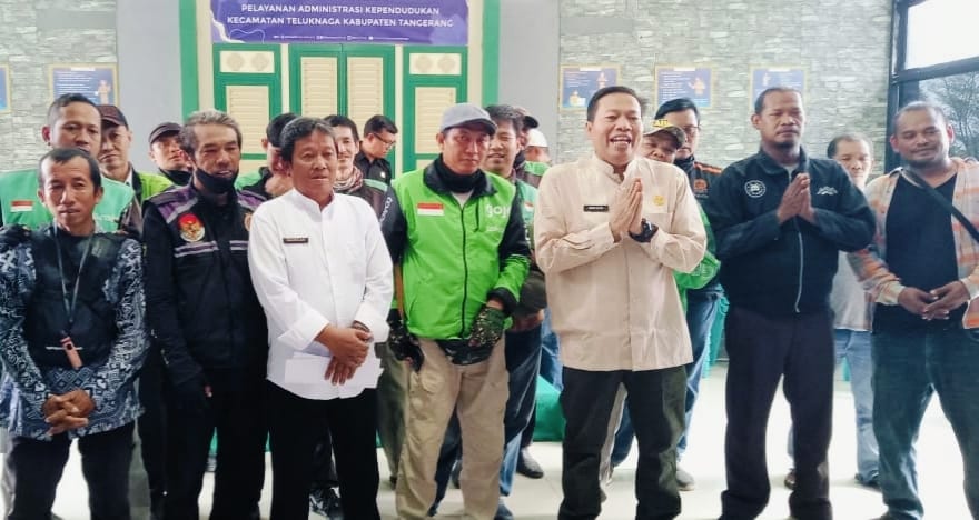 SIDIKPOST| Kabupaten Tangerang – Dalam Rangka menjalin sinergitas dengan driver Ojol, Pemerintah Daerah Kabupaten Tangerang melalui Pemerintah Kecamatan Teluknaga membagikan bantuan paket sembako kepada pengemudi ojek online (Ojol). Bantuan ini dilakukan dalam rangka memperingati hari ulang tahun Kabupaten Tangerang Ke-393 dengan tema *Bersyukur, Berkarya,Berdaya*.(17/10/25)