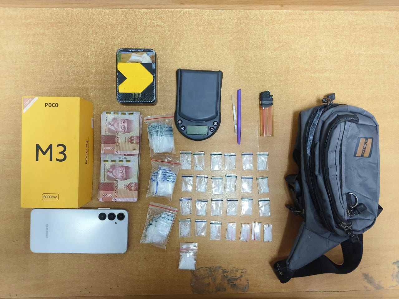 Tak berhenti di situ, petugas melanjutkan penggeledahan ke rumah A, yang diduga sebagai pengedar utama. Dari hasil penggeledahan, ditemukan 26 paket sabu siap edar dengan total berat 8,12 gram, disimpan di dalam tas selempang dan kotak handphone.