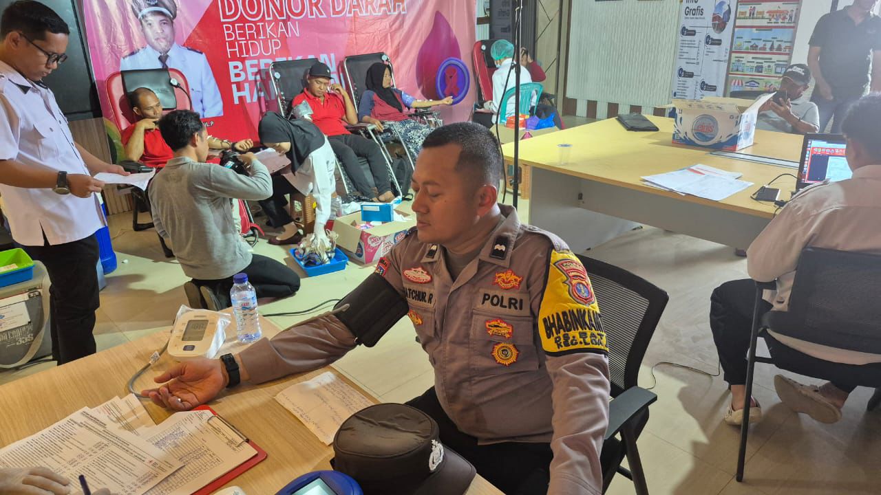 Dalam kegiatan ini, Aipda Catur turut menjadi peserta donor darah dan mengajak warga untuk berpartisipasi aktif dalam menjaga kesehatan dan kebersihan lingkungan.