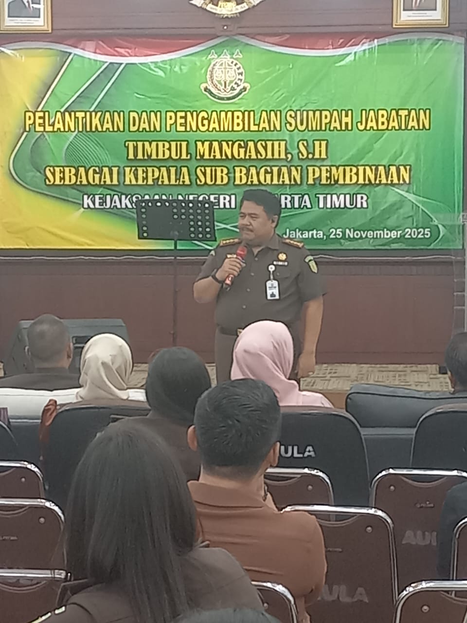 Saya percaya Saudara Timbul Mangasih mampu membawa energi baru bagi Kejari Jakarta Timur. Bekerjalah dengan komitmen, integritas, dan semangat kolaboratif untuk memperkuat institusi ini.”