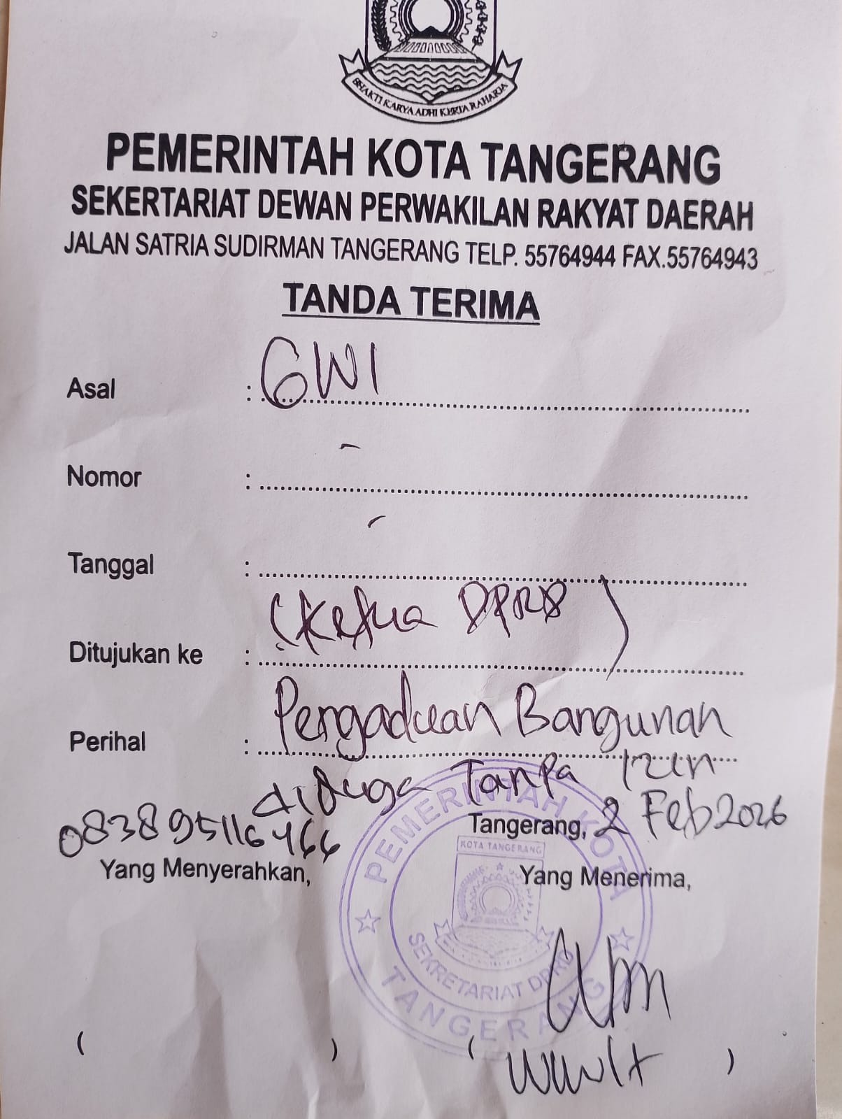 Karena merasa tidak ada kepastian penindakan, warga akhirnya mengambil langkah lanjutan dengan membuat aduan resmi ke Sekretariat Dewan (Setwan) DPRD Kota Tangerang.