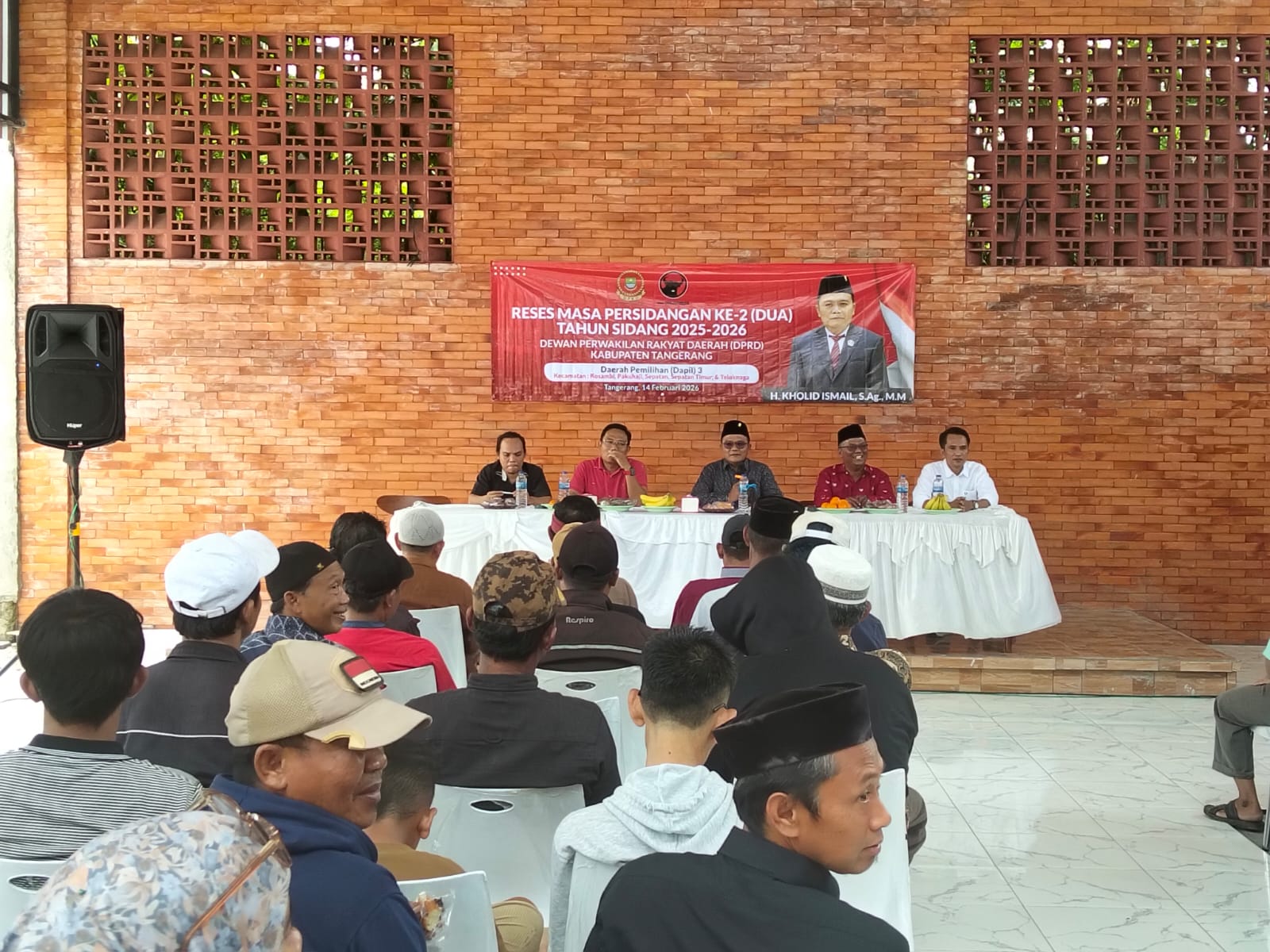 Pelaksanaan Kegiatan Acara Reses H. Kholid Ismail S.Ag.,M.M Wakil Ketua I DPRD Kabupaten Tangerang Masa Persidangan KE-2 Tahun Sidang 2025-2026 Dewan Perwakilan Rakyat Daerah (DPRD) Kabupaten Tangerang. Daerah Pemilihan (Dapil) 3 Kecamatan Kosambi, Pakuhaji, Sepatan, Sepatan Timur Dan Teluknaga. Acara Reses Masa Persidangan KE-2 Tahun Sidang 2025-2026. Acara Diawali Dengan Pembacaan Doa Kemudian Dilanjutkan Dengan Menyanyikan Lagu Indonesia Raya Kemudian Dilanjutkan Dengan Sambutan Ubaidillah S.H Team Advokasi Teman Ngopi H. Kholid Kemudian Dilanjutkan Dengan Sambutan Oleh H. Kholid Ismail S. Ag.,M.M Wakil Ketua I DPRD Kabupaten Tangerang Kemudian Dilanjutkan Dengan Sambutan Oleh Prayogo S. IP Ketua Team Manager Teman Ngopi H. Kholid Kemudian Dilanjutkan Dengan Acara Diskusi Tanya Jawab Dan Usulan Usulan. Melalui Musyawarah Bersama Dengan Harapan Agar Semua Usulan Dan Aspirasi Dapat Terealisasi Dengan Baik. (Turut Hadir Team Relawan Bencana Teman Ngopi H. Kholid Beserta Prayogo Ketua Team Manager Teman Ngopi H. Kholid Bersama Ubaidilah S. H Team Advokasi Teman Ngopi H. Kholid).