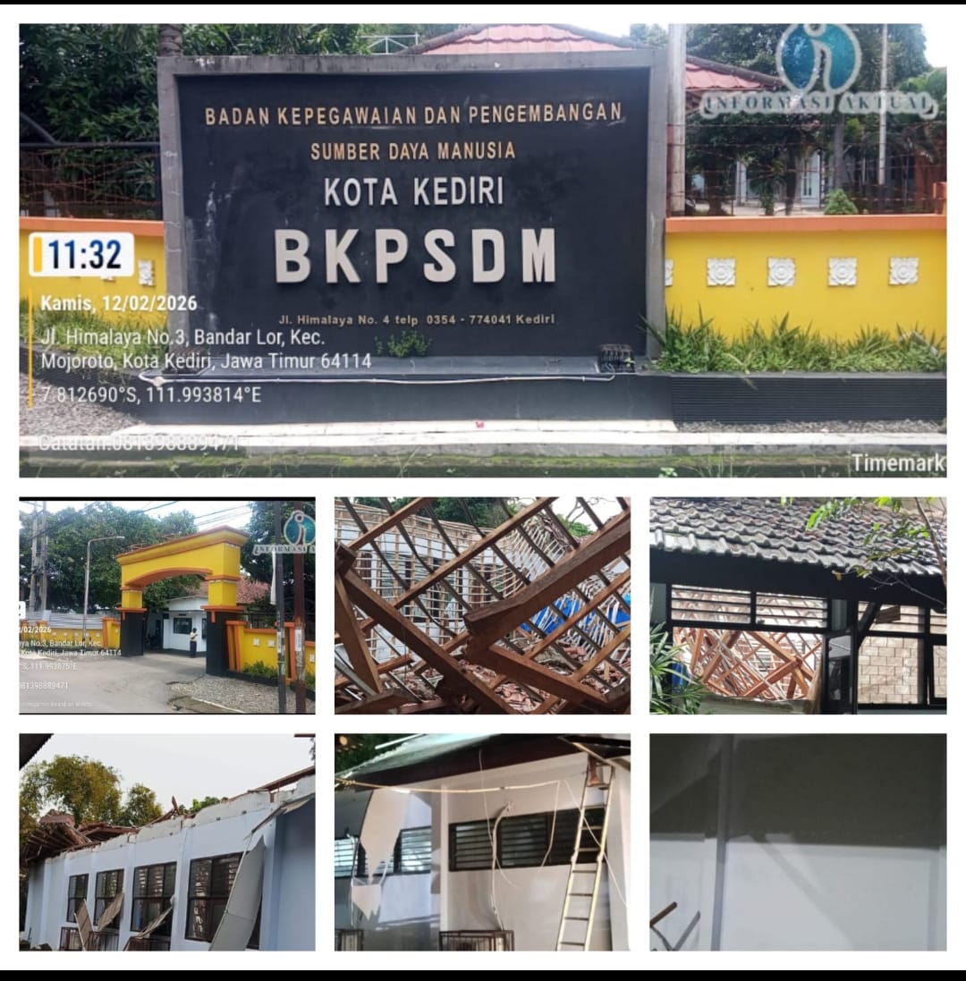 SIDIKPOST| KEDIRI – Rubuhnya atap bangunan Kantor Badan Kepegawaian dan Pengembangan Sumber Daya Manusia (BKPSDM) Kota Kediri yang disebut baru berusia sekitar lima tahun menuai perhatian publik.