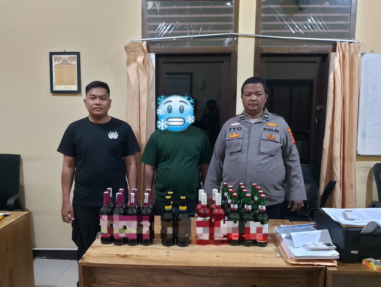 Dari hasil penggeledahan, polisi menyita sedikitnya 27 botol minuman keras yakni 12 Botol Bir Bintang, 8 Botol Anggur Merah, 3 Botol Bir Hitam dan 4 Botol Atlas.