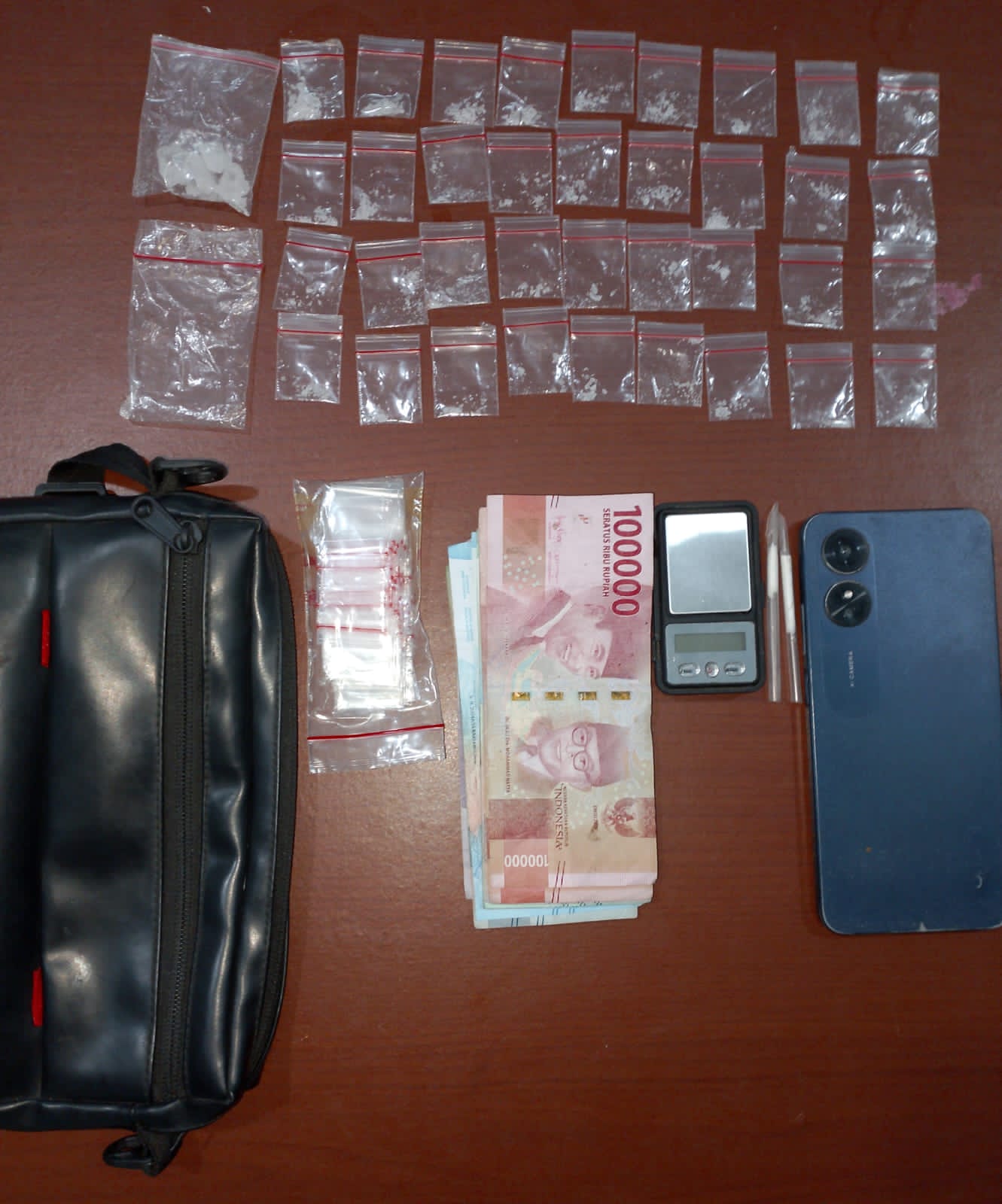 Dalam penggerebekan tersebut, polisi berhasil mengamankan barang bukti narkotika jenis sabu dalam jumlah cukup besar, yakni 36 bungkus plastik bening kecil dan satu bungkus plastik bening sedang dengan total berat kotor mencapai 8,05 gram.