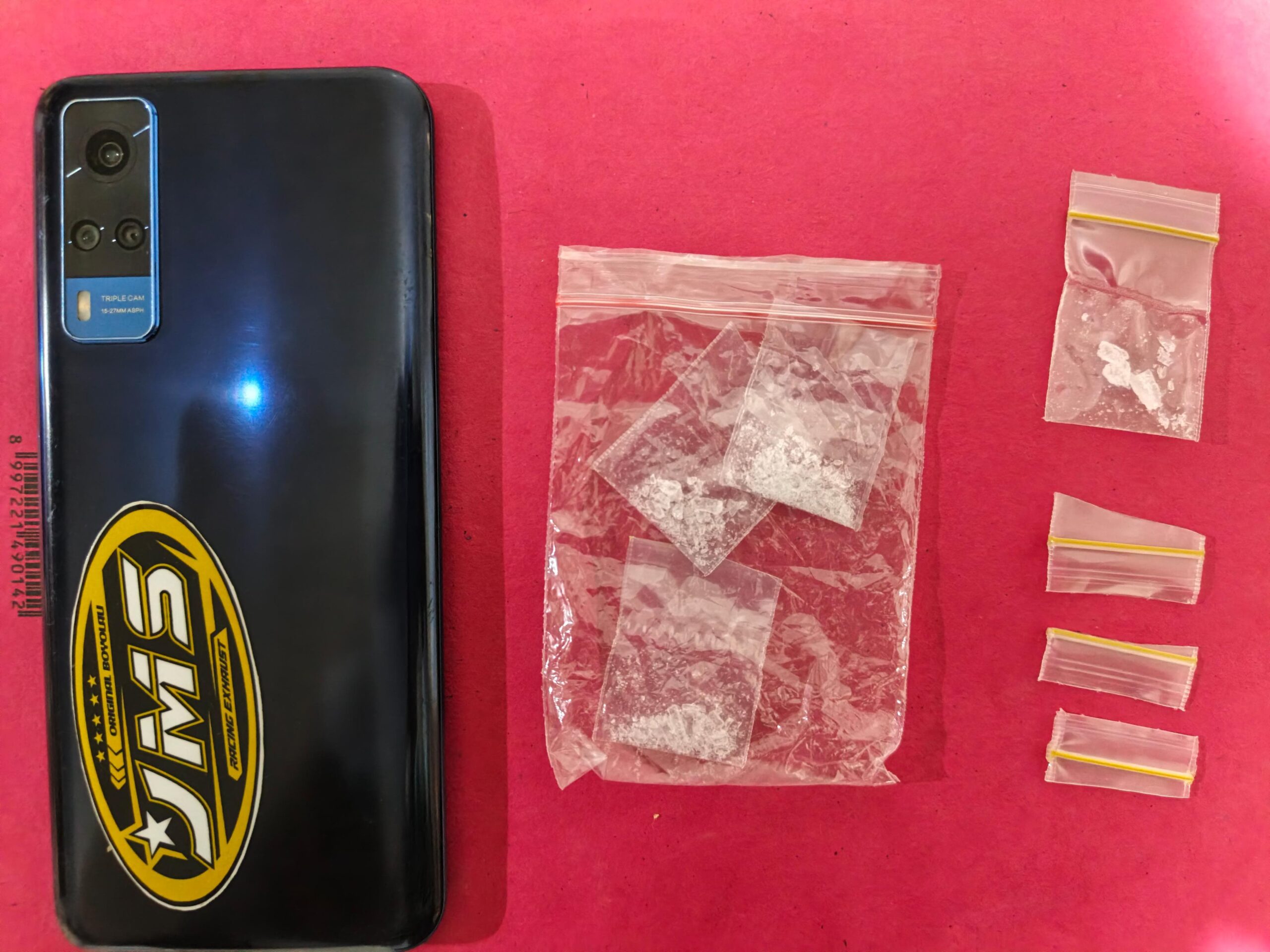 Saat dilakukan penggeledahan yang disaksikan oleh Ketua RT setempat, petugas menemukan barang bukti berupa empat bungkus plastik bening berisi kristal putih yang diduga sabu-sabu. Barang haram tersebut disembunyikan pelaku di saku celana sebelah kanan dan di dalam celana dalam guna mengelabui petugas.