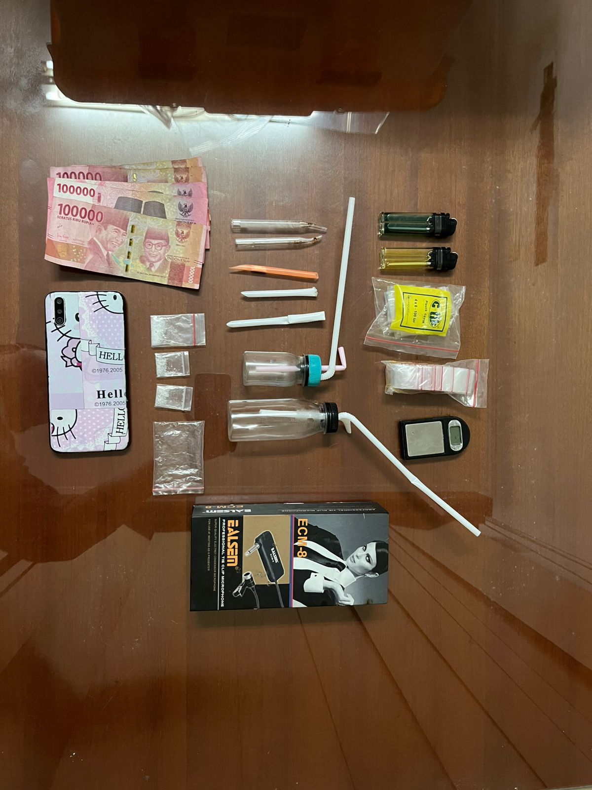 “Di lokasi kedua (rumah JA), tim menemukan barang bukti yang lebih besar, yakni 21 poket sabu dengan berat kotor 6,80 gram, timbangan, serta uang tunai Rp2.000.000 yang diduga hasil penjualan,” jelas Kasat Resnarkoba.