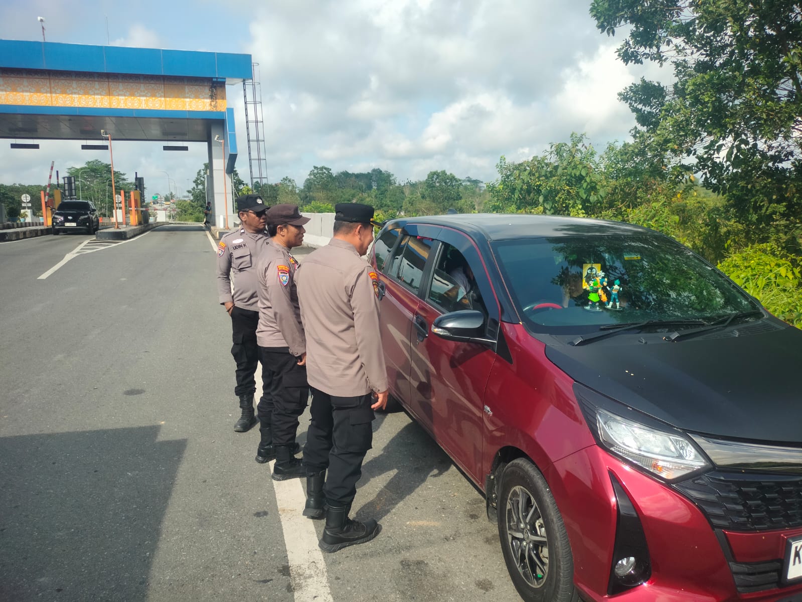 Kegiatan yang dipimpin langsung oleh Plh. Kapolsek Samboja, Iptu Iwan Setiawan, menyasar kendaraan roda empat dan angkutan penumpang yang melintas di Gerbang Tol Balikpapan-Samarinda (Balsam), tepatnya di Kelurahan Sungai Merdeka, Kecamatan Samboja, Senin (20/04/2026).