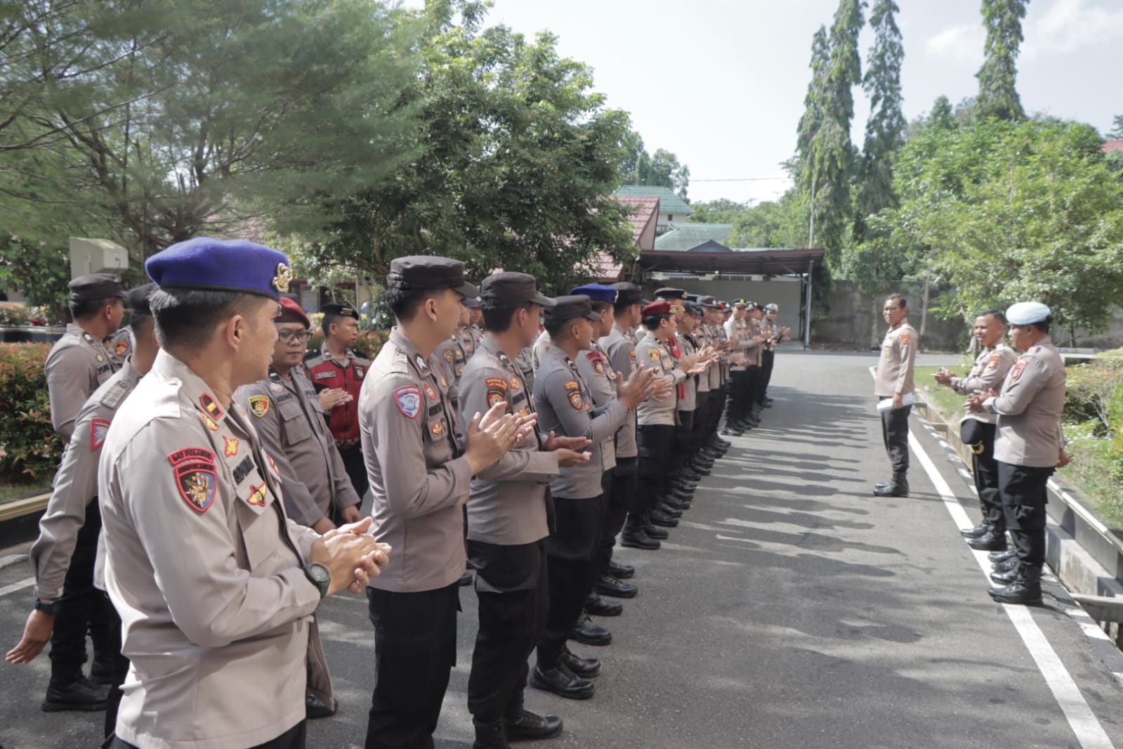 “Rekan-rekan yang berangkat hari ini membawa nama baik Polres Kutai Kartanegara. Saya instruksikan agar tidak ada satu pun personel yang terpancing emosi. Hadapi saudara-saudara kita yang berunjuk rasa dengan senyum dan pelayanan terbaik,” tegas AKBP Khairul Basyar di hadapan ratusan personel Pleton Siaga.