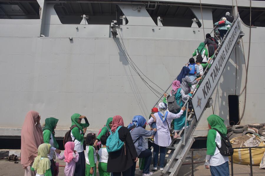 Jakarta, 14 Desember 2018 ——- Pelajar dari Sekolah Hang Tuah 5 Cilincing dan Sekolah Islam Permata Kids Duren Sawit mengunjungi dan melihat langsung kapal perang Komando Lintas Laut Militer (Kolinlamil) yang sandar di Dermaga Kolinlamil, Tanjung Priok, Jakarta Utara, Jumat (14/12).