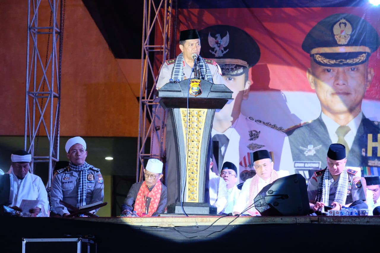 Lampung-Demi terciptanya Pemilu 2019 yang aman, danai dan sejuk di Provinsi Lampung, Polda Lampung gelar Tabligh Akbad dan Lampung Bershalawat bersama Habib Syech Abdul Qodir Assegaf. Sabtu, 15 Desember 2018.