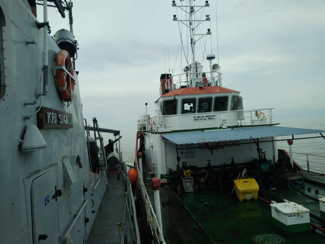 Jakarta, 14 Desember 2018,– Keberadaan Unsur KRI Jajaran Koarmada I dalam memberantas kegiatan ilegal dan menegakkan hukum di laut terus membuahkan hasil. Kali ini KRI Sigalu-857 berhasil menangkap Kapal SPOB yang tidak dilengkapi Surat Izin Bongkar Muat Barang Berbahaya dan beberapa dokumen pelayaran tidak lengkap sehingga diduga melanggar Undang-Undang Nomor 17 Tahun 2018 tentang Pelayaran di Perairan Pulau Rangsang.